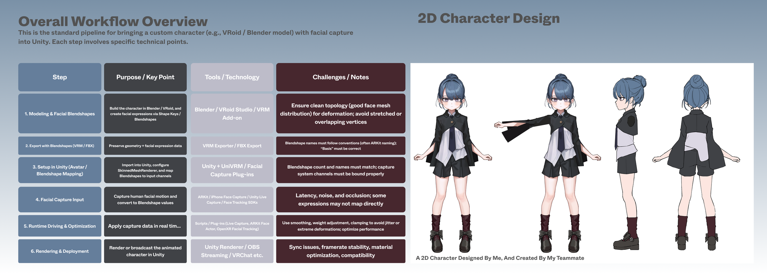 Neko boss is a virtual 3D character modeling project created with Blender 3D and enhanced through iFacialMocap for real-time facial expression tracking. The model serves as a visual representation of the AI Counselor project(Project 2), providing users with a more immersive and emotionally engaging experience. It can be imported into Unity and includes basic facial expressions and motion animations.